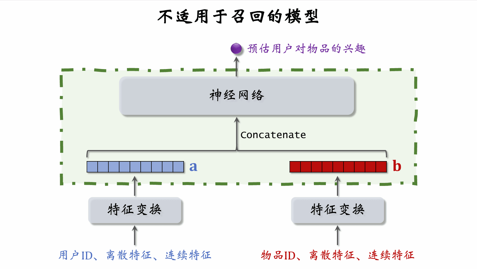 • 预估用户对每个物品的兴趣分数: